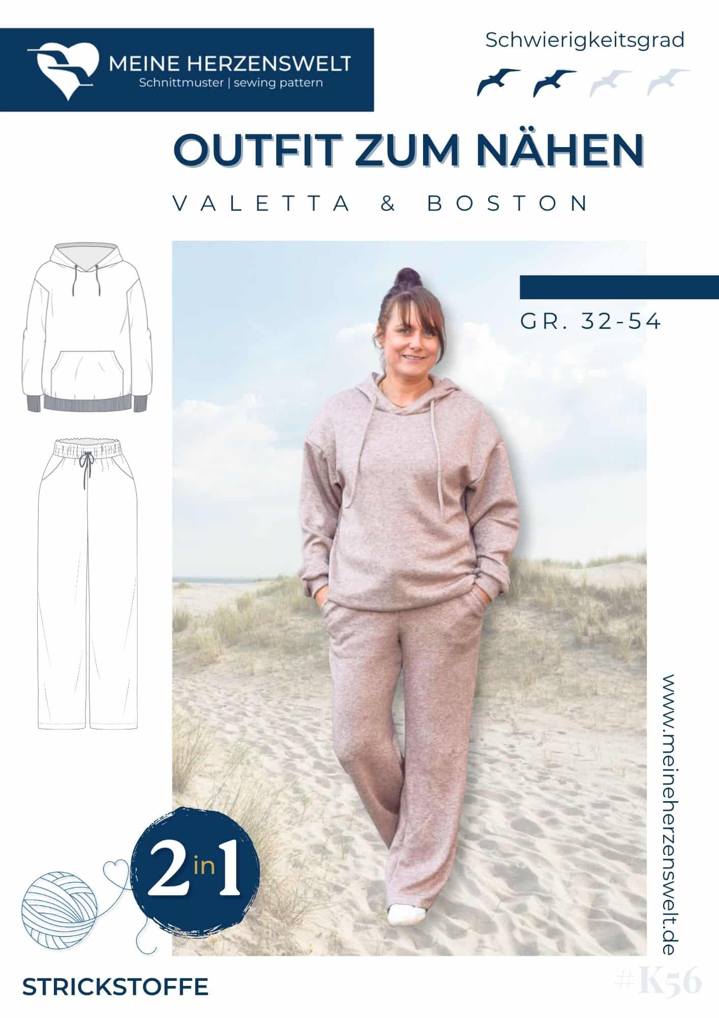 Strickoutfit nähen – Hoodie und Hose als Schnittmuster für Damen (Valetta und Boston)